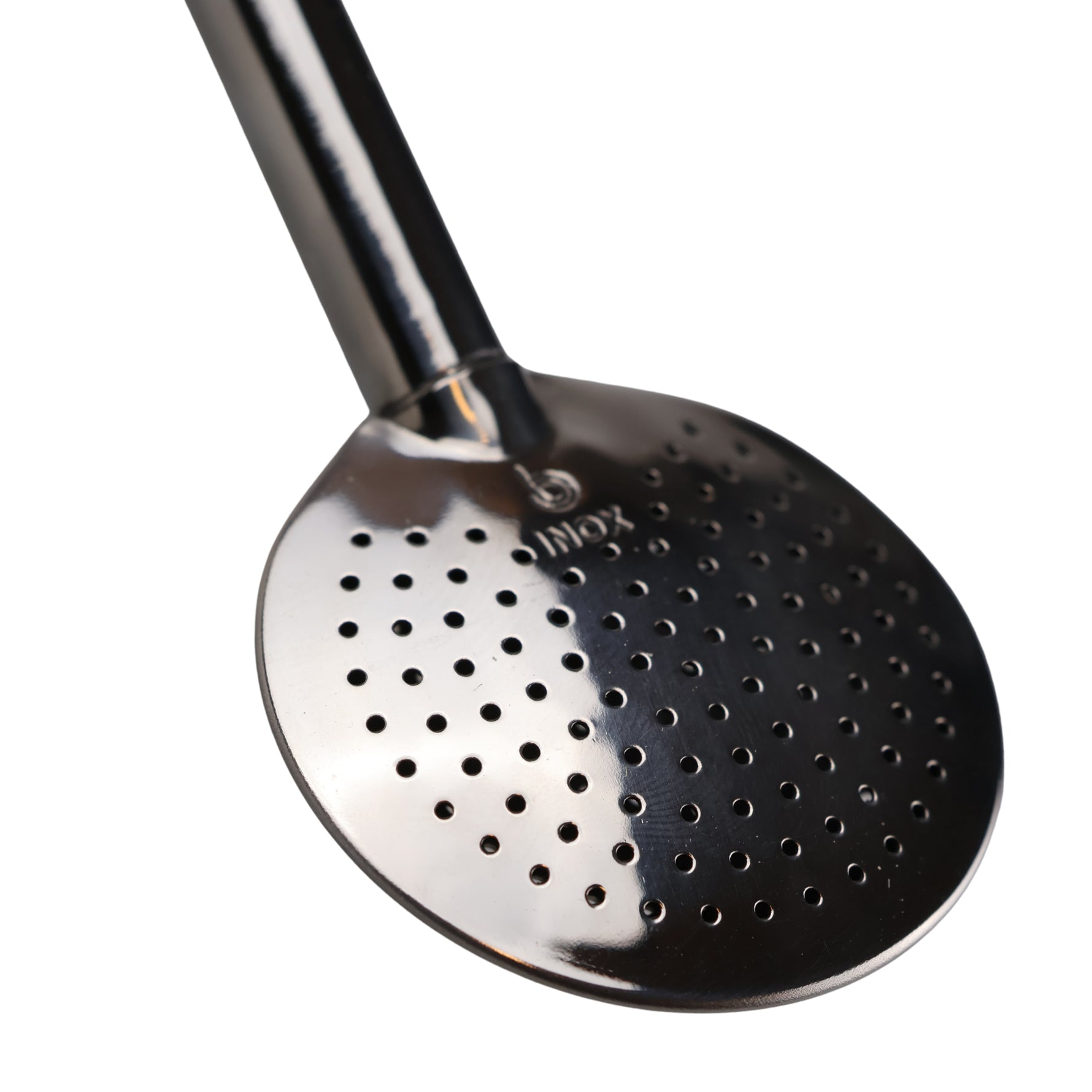 Hoogwaardige bombilla met een plat, lepelvormig filter en koelring van het Braziliaanse bedrijf Bortonaggio. Dankzij een groot aantal kleine gaatjes is de bombilla geschikt voor alle soorten poederachtige yerba mate, met name voor yerba mate van het type Chimarrao.